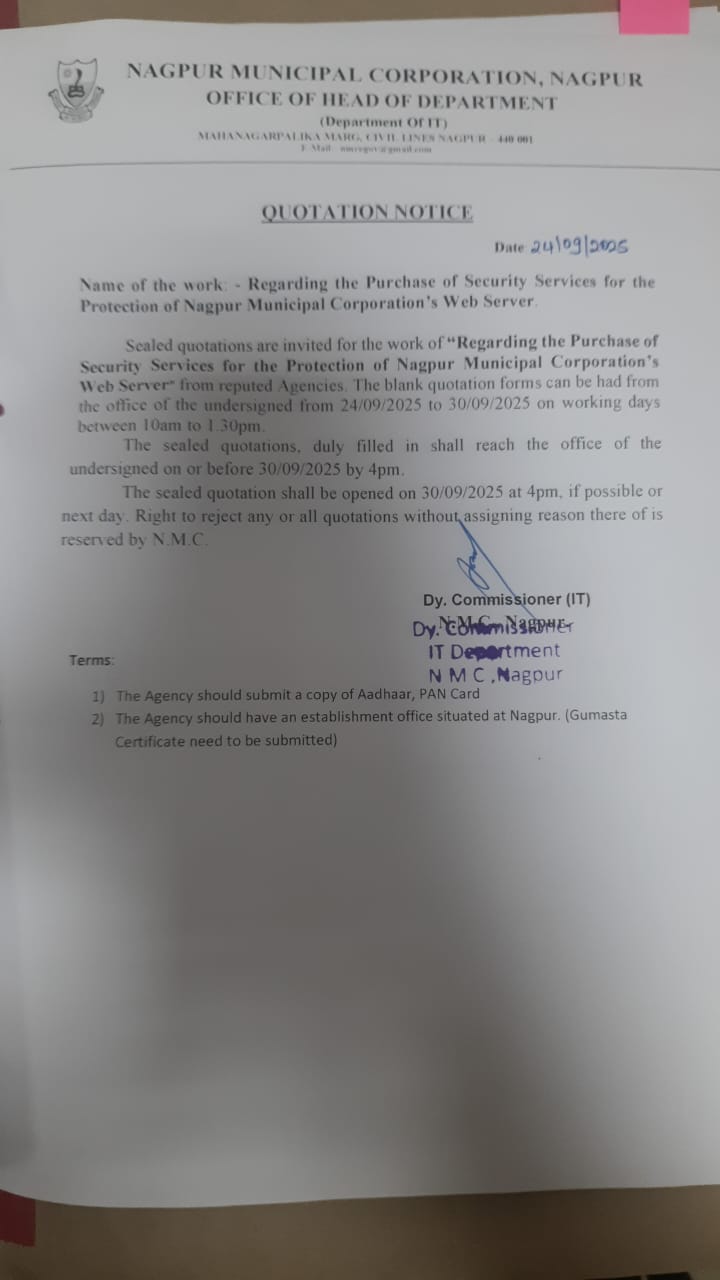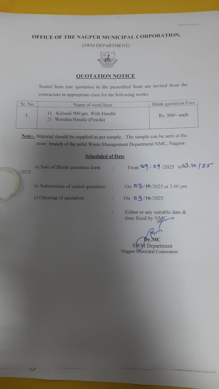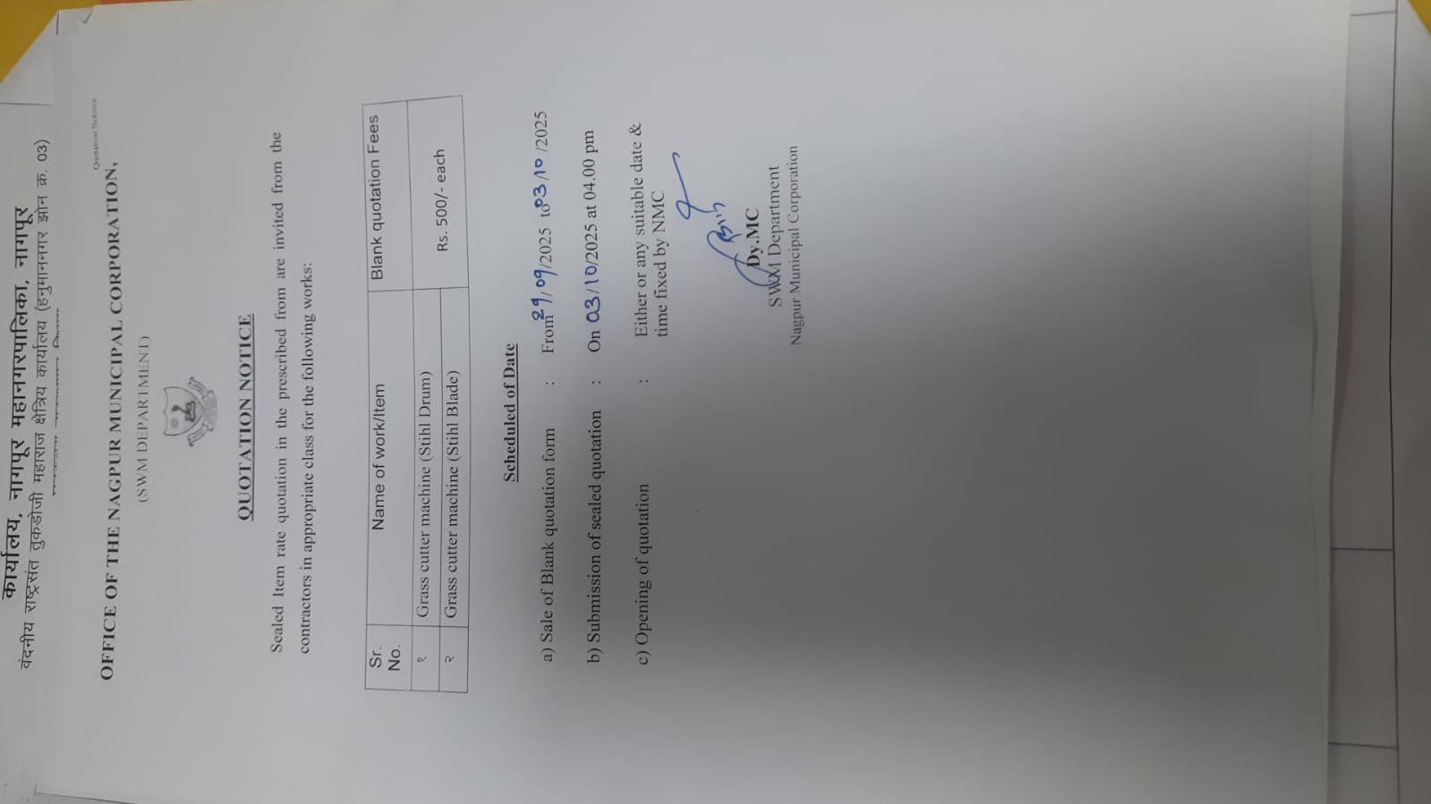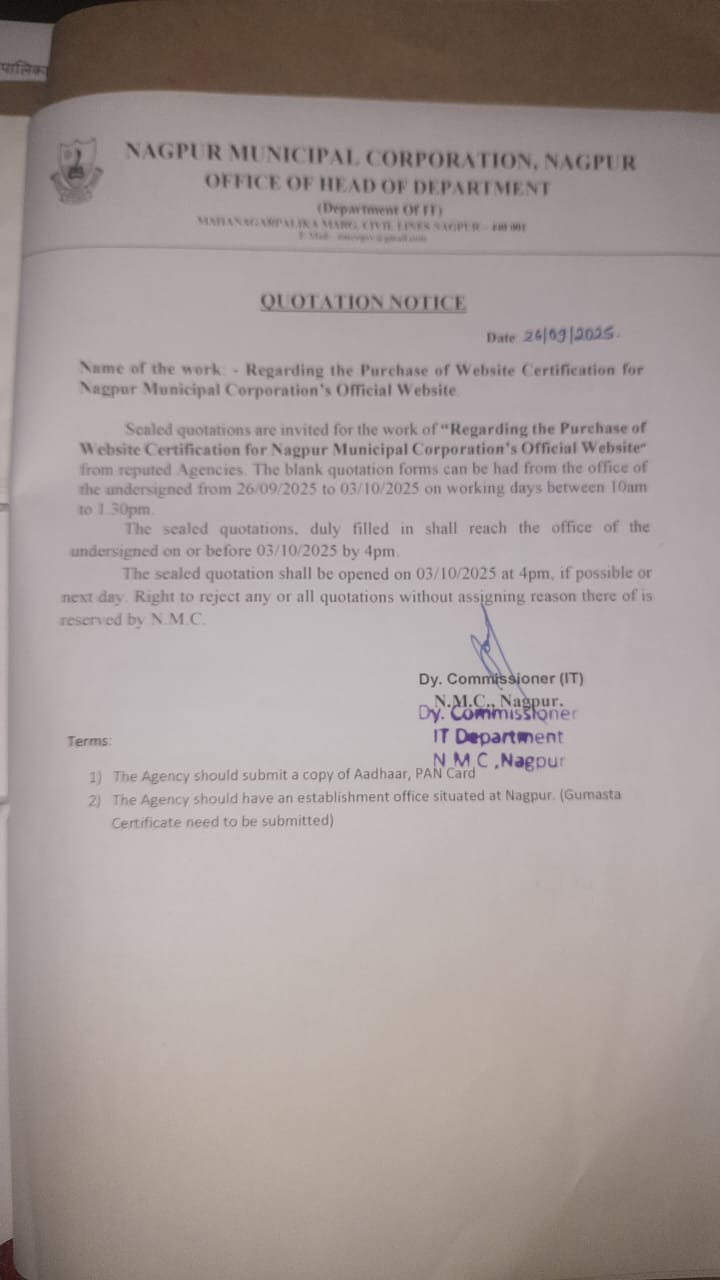 Regarding inviting applications for printing of daily useful materials in library and study room of Nagpur Municipal Corporation |